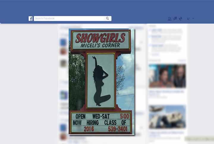 The sign for Miceli’s Corner, an adult entertainment business in the Clare County community of Harrison, is encouraging women from the graduating class of 2016 to apply.