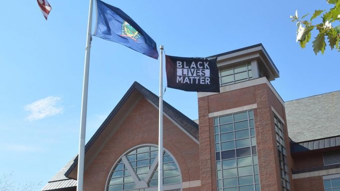 The leftist agenda on college campuses continues with the University Of Vermont flying the flag of the Black Lives Matter hate group alongside the American flag.